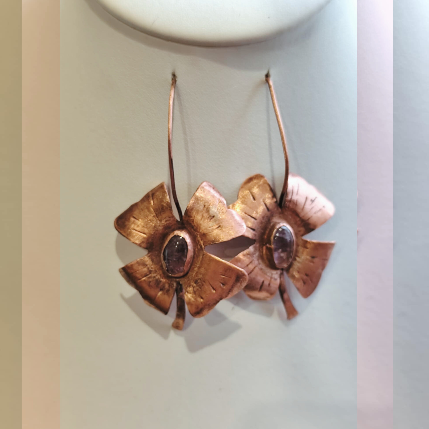 Copper flowers and amethyst earrings, nature lovers, natural stone, handmade,gift for lovers