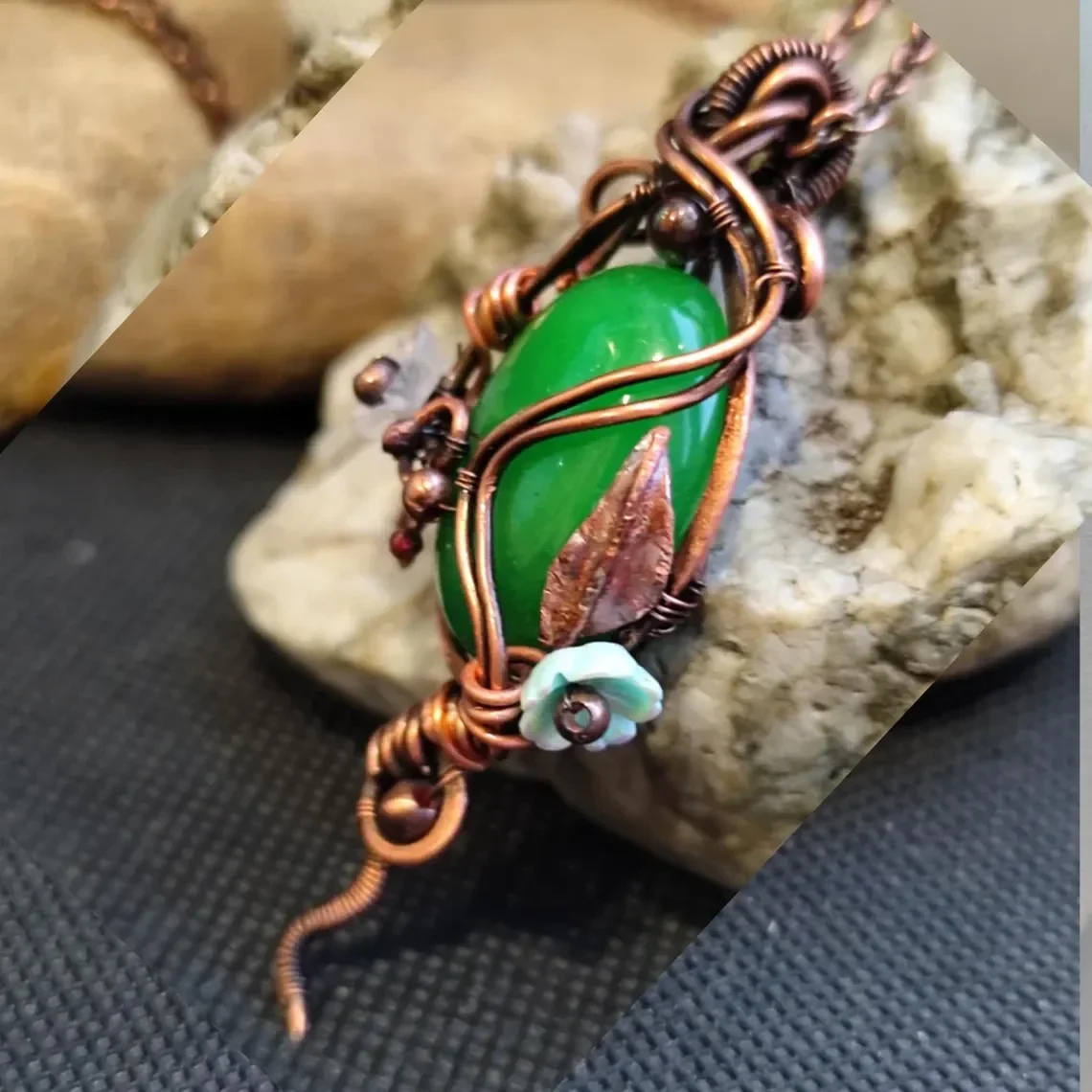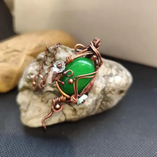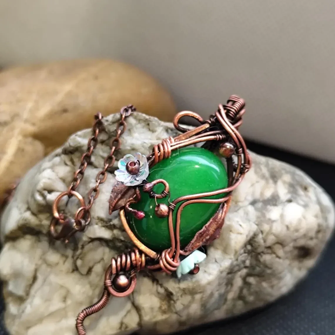 Handgemachte Kupfer Halskette, Grüner Achat, Kristall Blumen